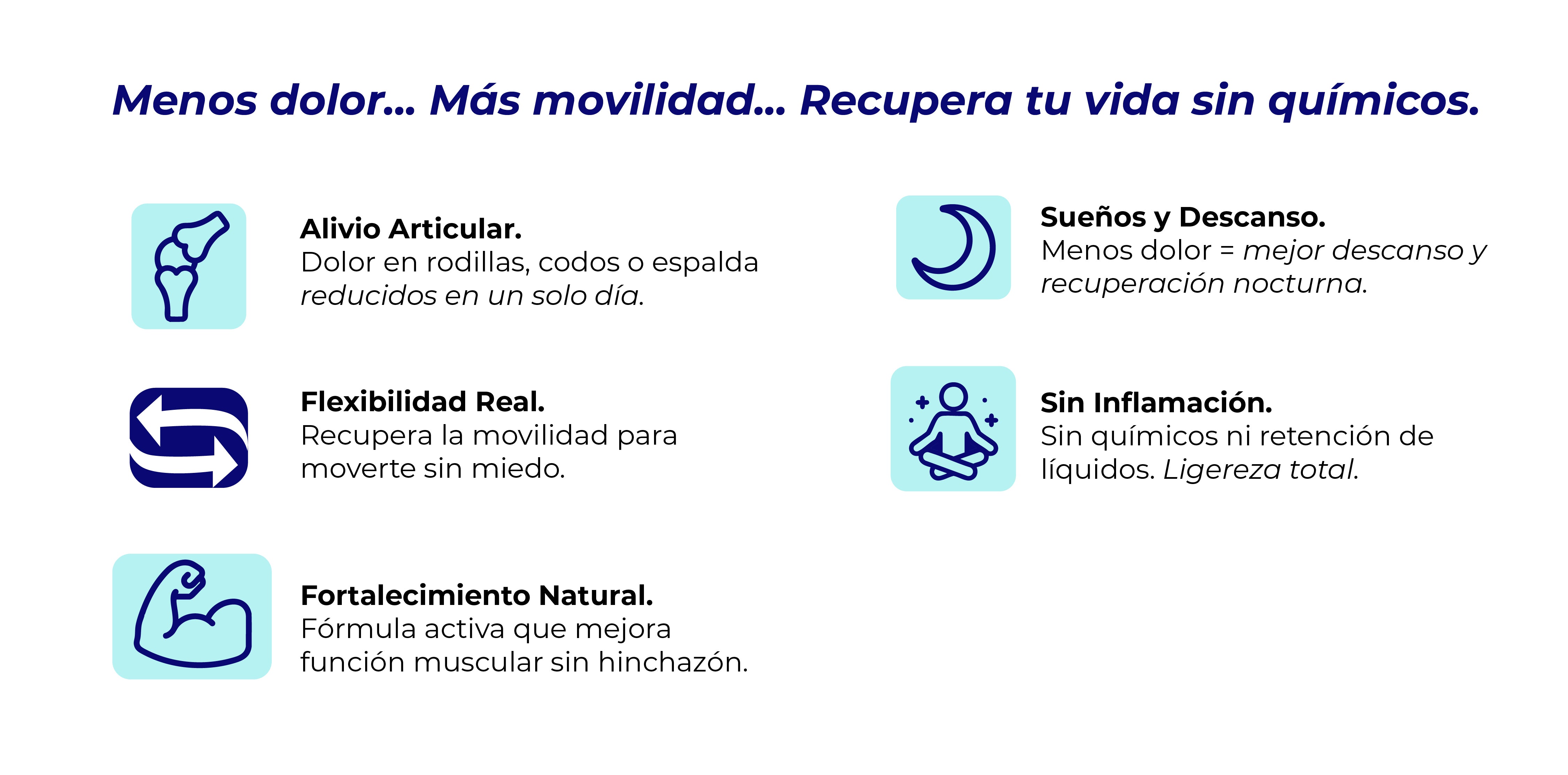 Alivio real en solo 14 días: Fórmula diseñada para reducir dolor e inflamación en rodillas, codos, espalda y manos — sin químicos agresivos.